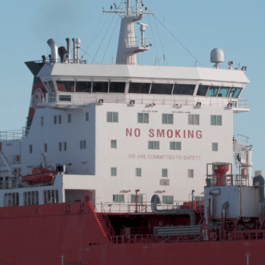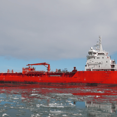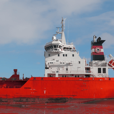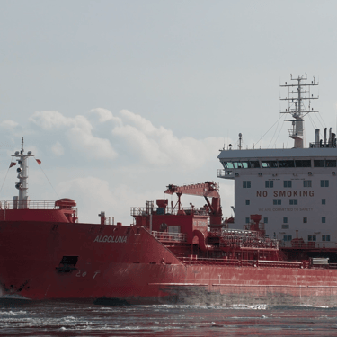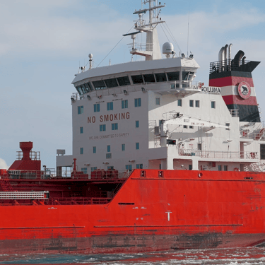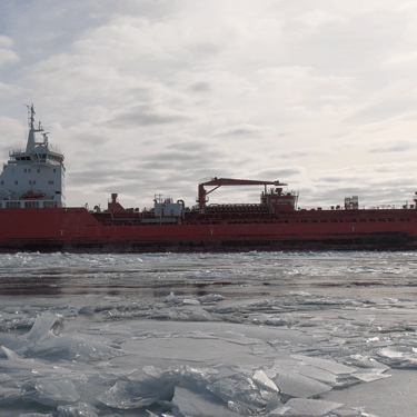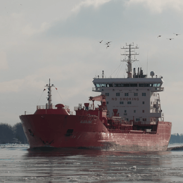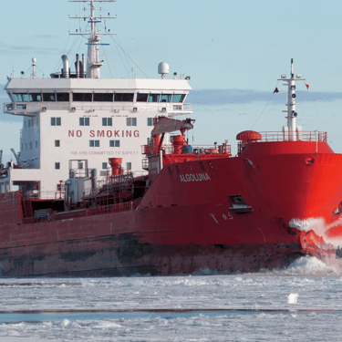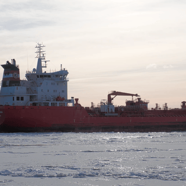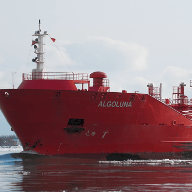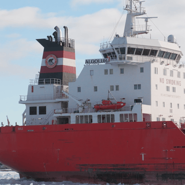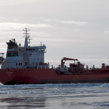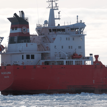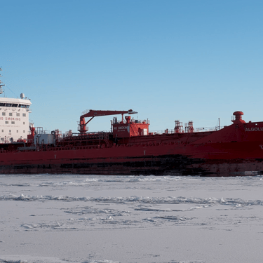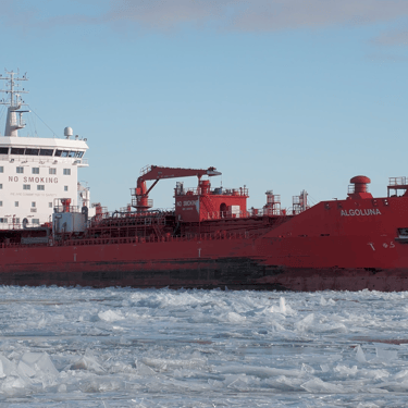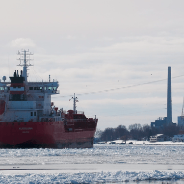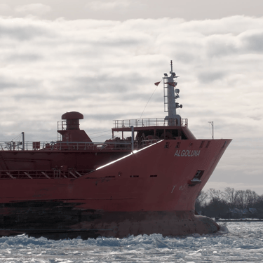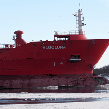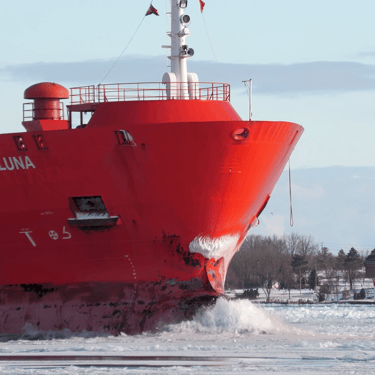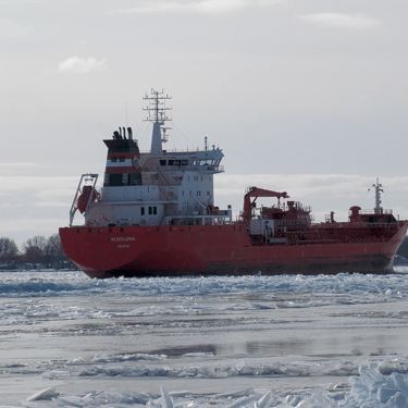 Great Lakes tanker Algoluna (Algoma Central Corporation) pushing through winter ice on the St. Clair River.