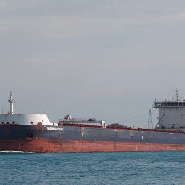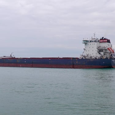 Algoma Harvester Passing St. Clair, Michigan with a Salute