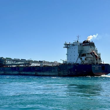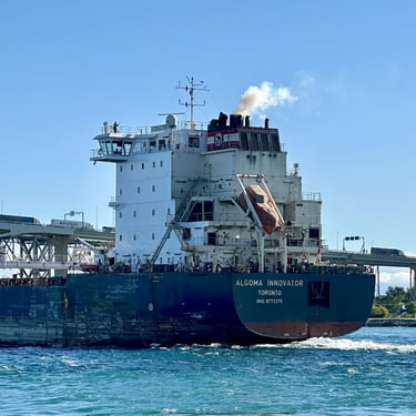 Lake Freighter Algoma Innovator Makes a Close Pass at the Blue Water Bridge!