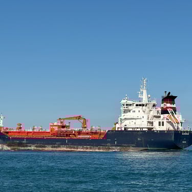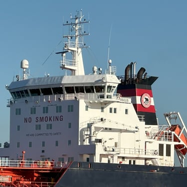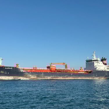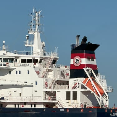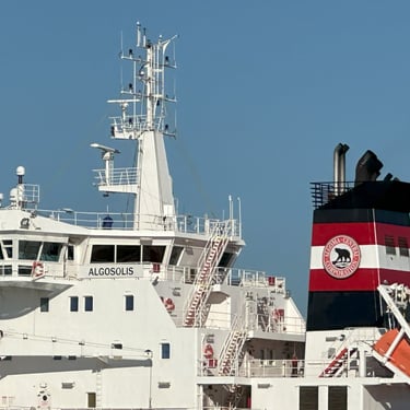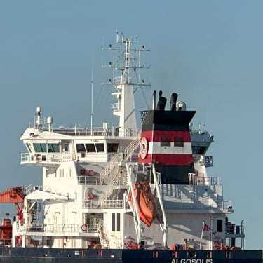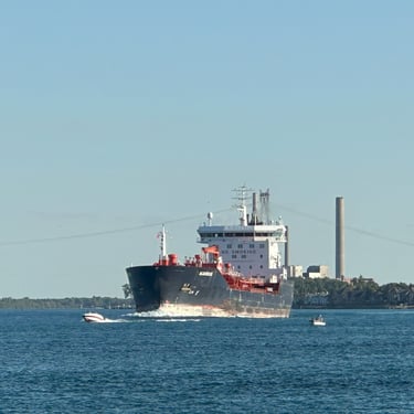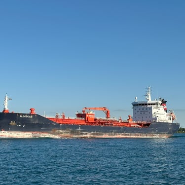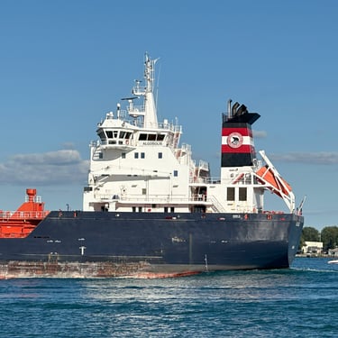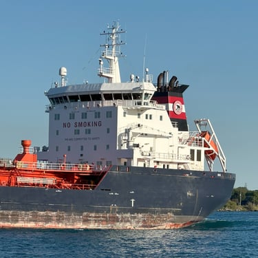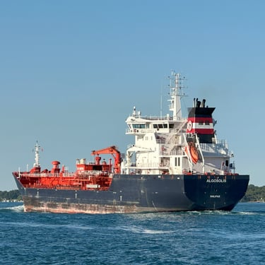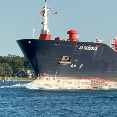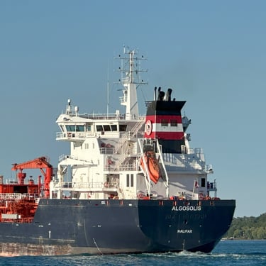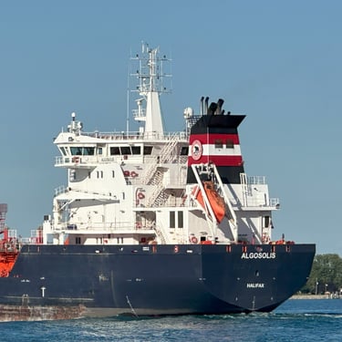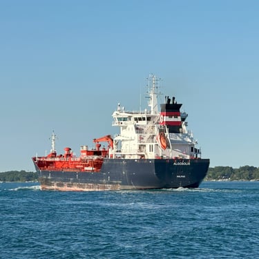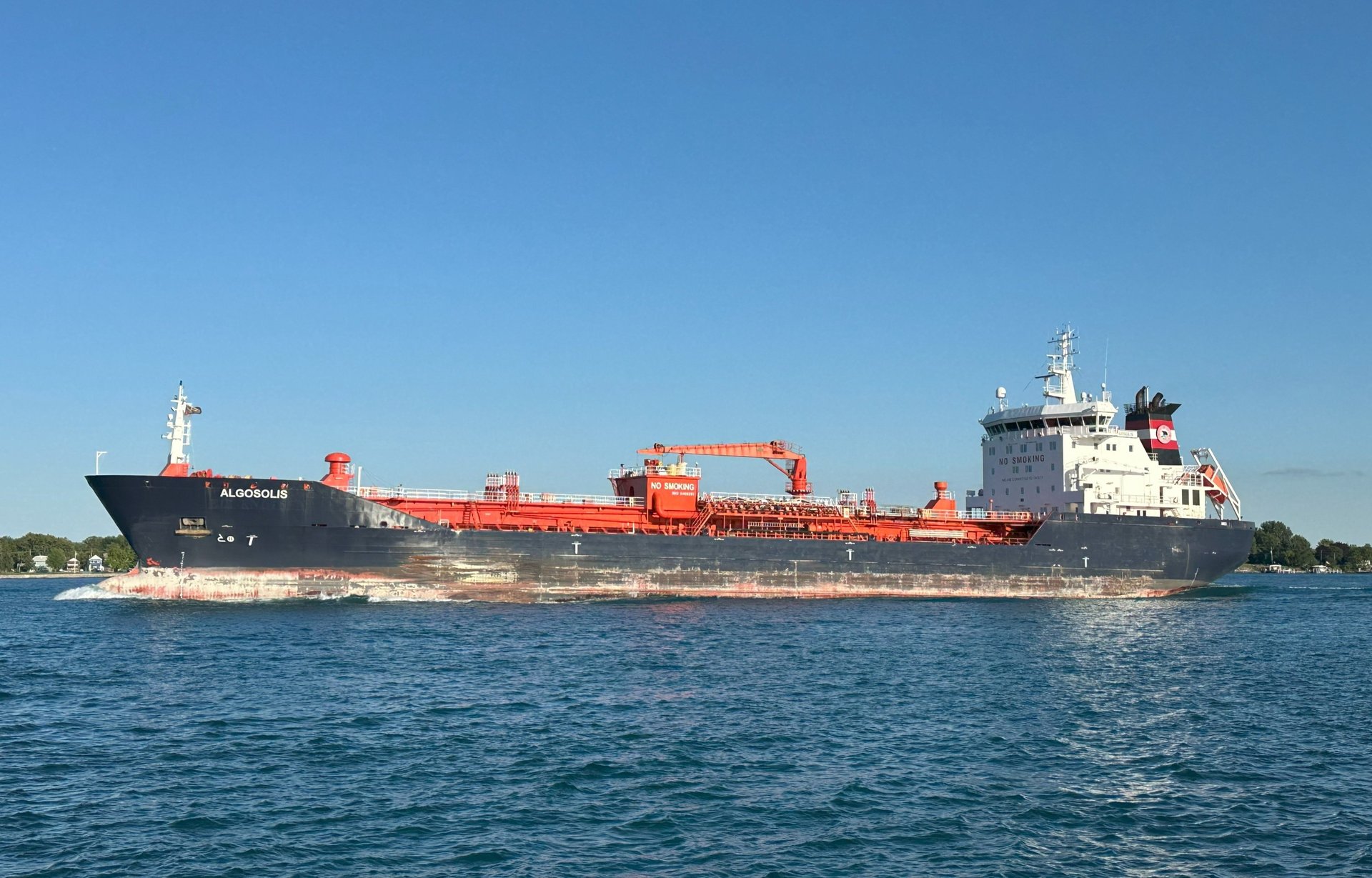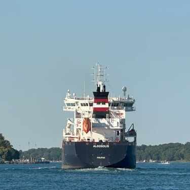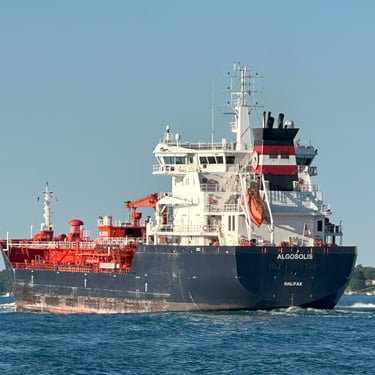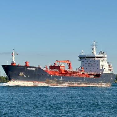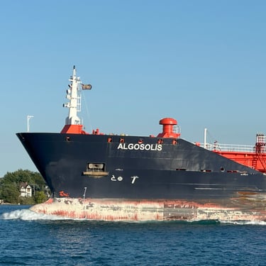 Great Lakes tanker Algosolis (Algoma Central Corporation) on the St. Clair River on a sunny day with Sunday boaters. St. Clair, Michigan, August 31, 2025.