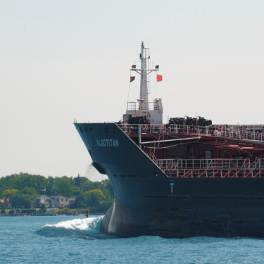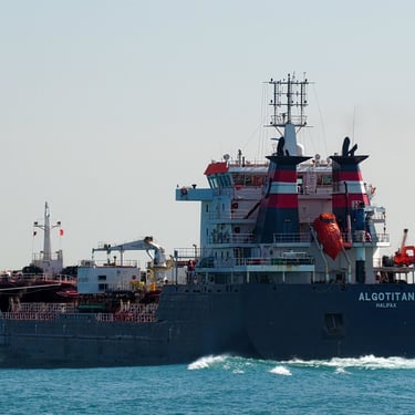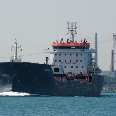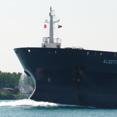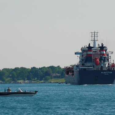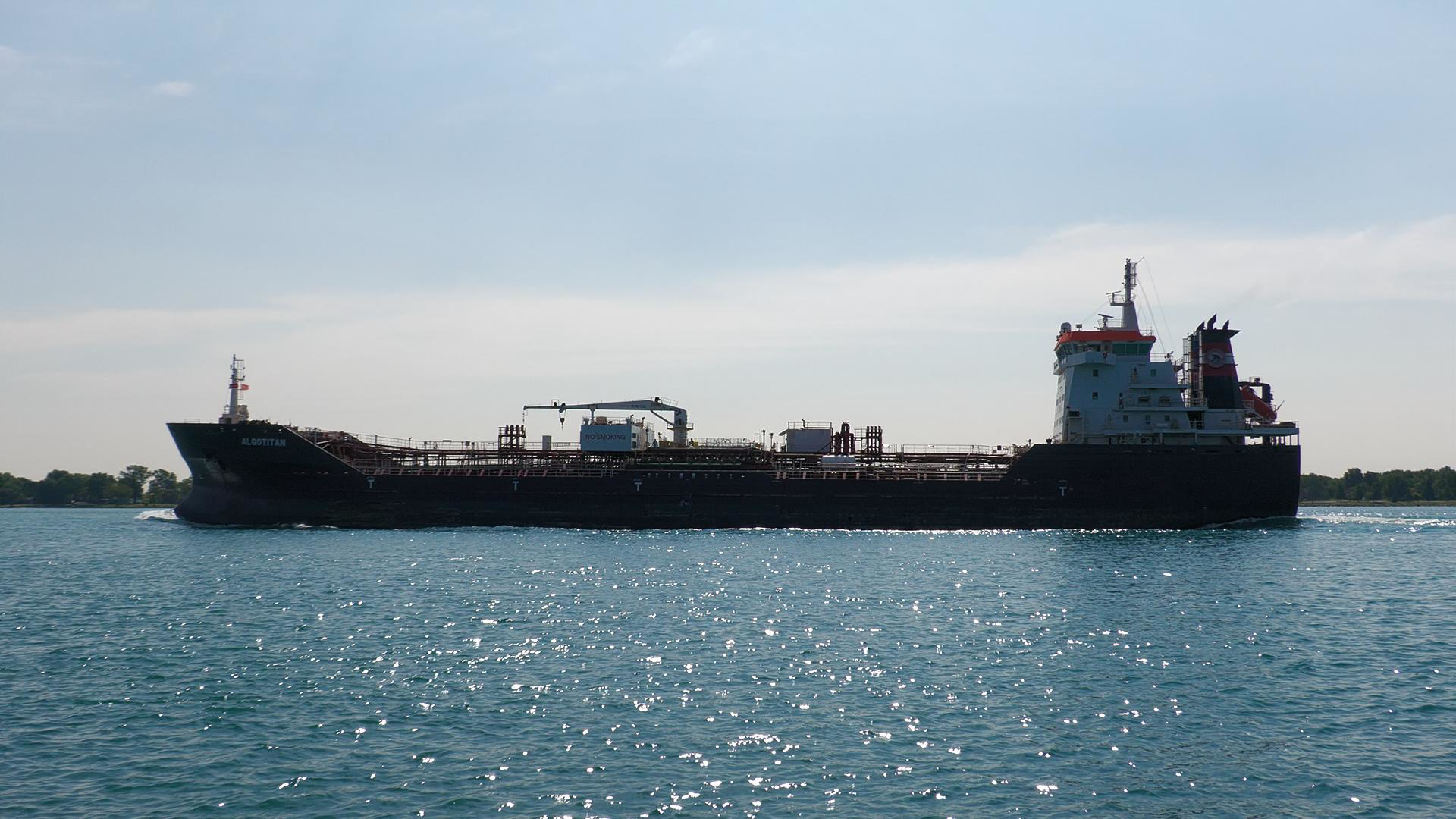 469’ Tanker Algotitan (Algoma Central Corporation) gives a single horn blast while passing St. Clair, Michigan, on the St. Clair River. June 15, 2025.