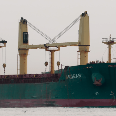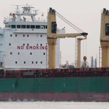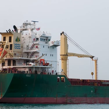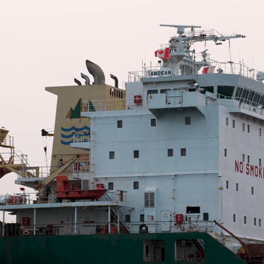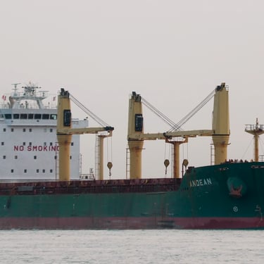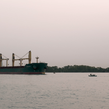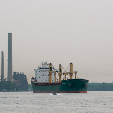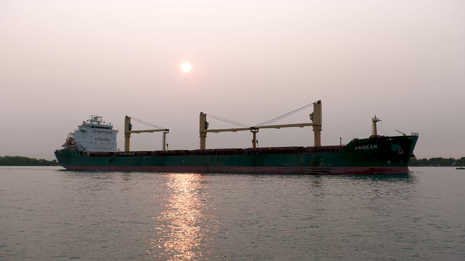 A series of 5 short horn blasts from the 607' ship Andean, as she is signaling danger to the one straggling fishing boat that had not yet moved out of her path, downbound on the St. Clair River. June 03, 2025.