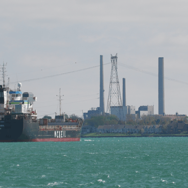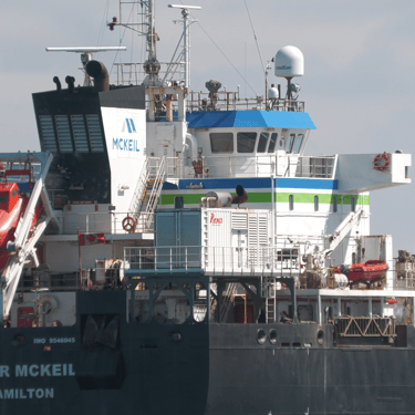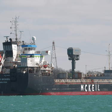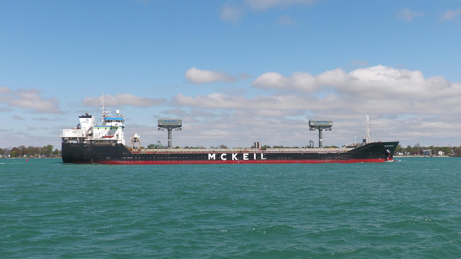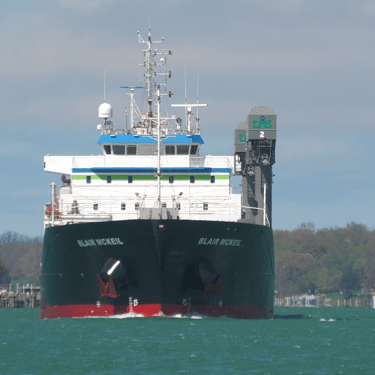 459’ Blair McKeil, a Great Lakes freighter owned by McKeil Marine, heads down the St. Clair River, passing St. Clair, Michigan. May 08, 2025.