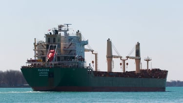 Montreal, Quebec based Canfornav, was originally founded in 1976 as Canadian Forest Navigation Co Ltd., for the transportation of lumber and paper products. Today the company operates a large fleet of bulk carriers, transporting grain, agricultural products, steel and other cargos on the Great Lakes and to global markets. Canfornav ships are named for different species of ducks, and they feature bright green hulls with yellow cranes on deck.