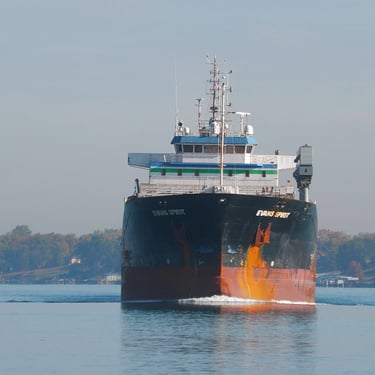 459’ Evans Spirit (McKeil Marine) heading down the St. Clair River on a sunny fall day. St. Clair, Michigan, October 14, 2025.