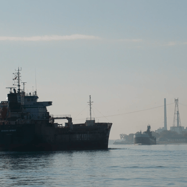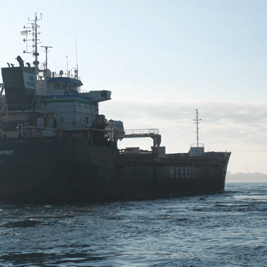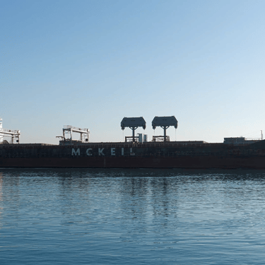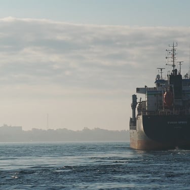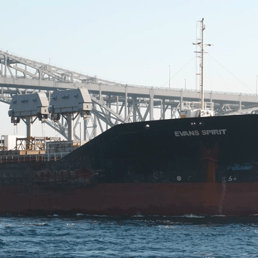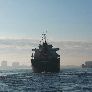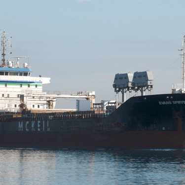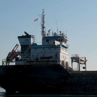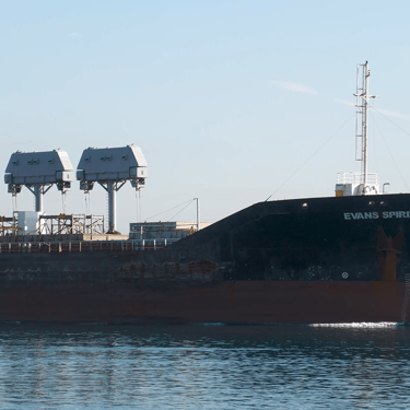 Bulk Freighter Evans Spirit Passes by in Sunlight and Shadows