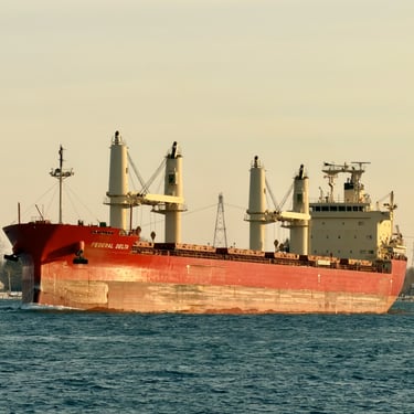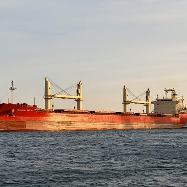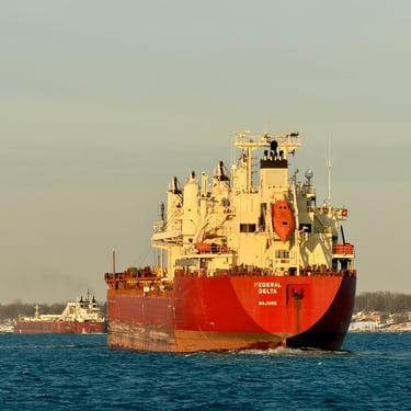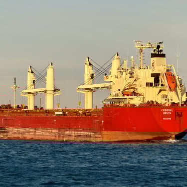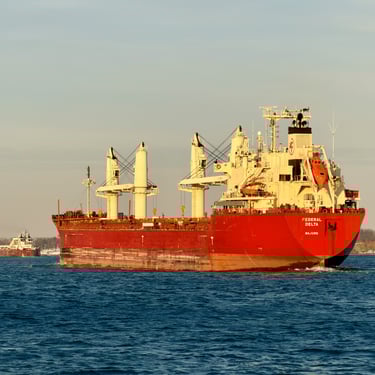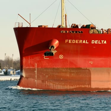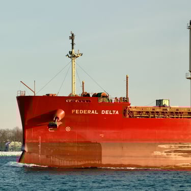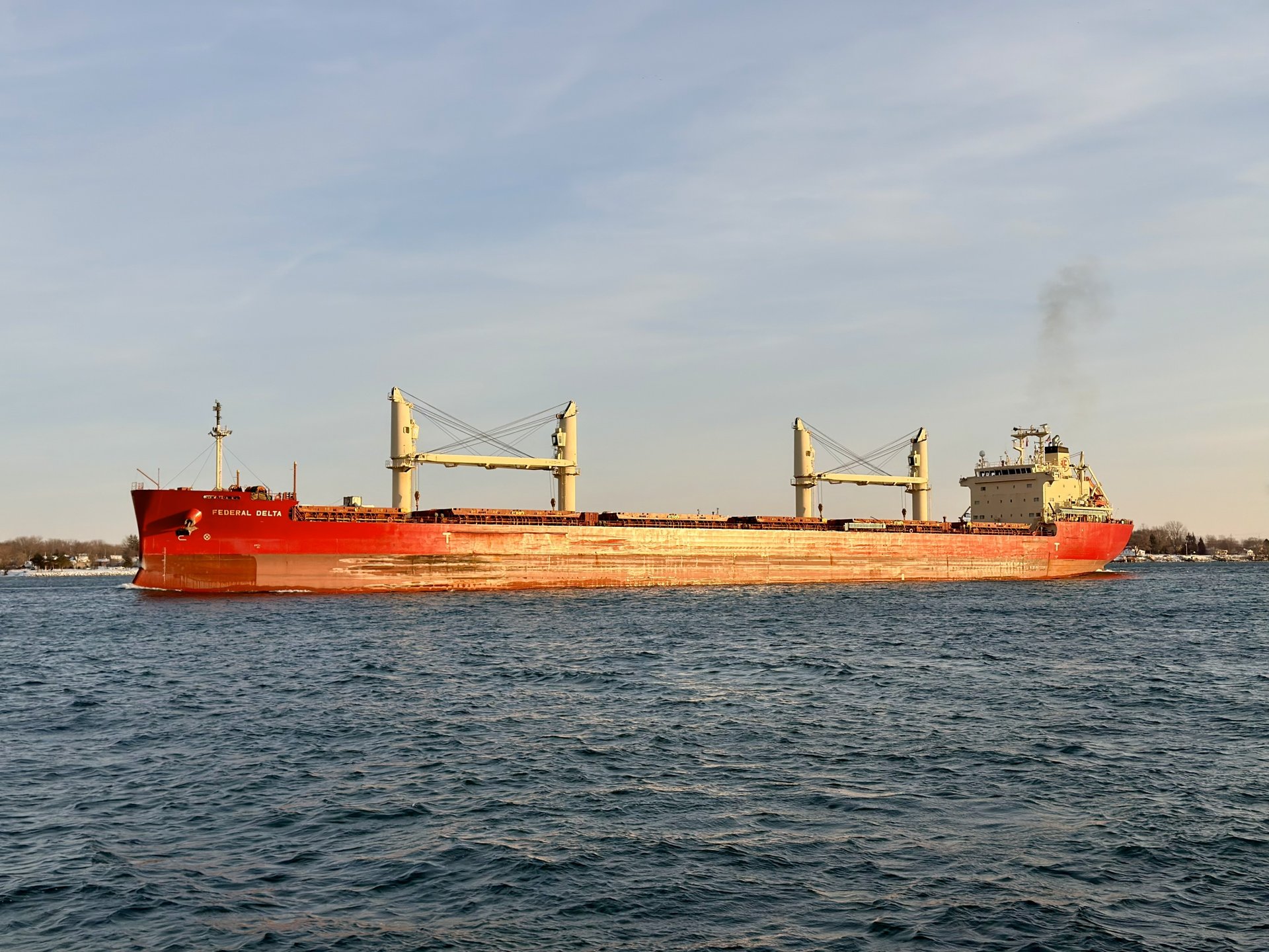 Saltie Federal Delta (Fednav) heading up the St. Clair River. St. Clair, Michigan, December 16, 2025.