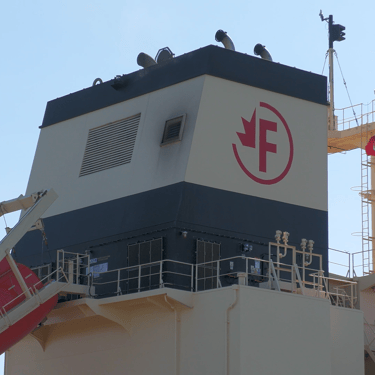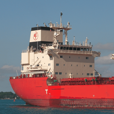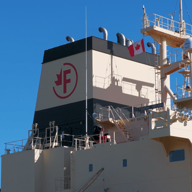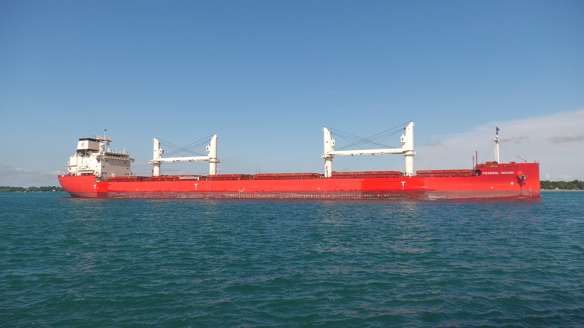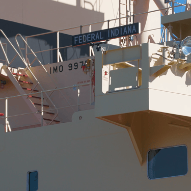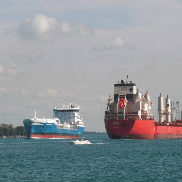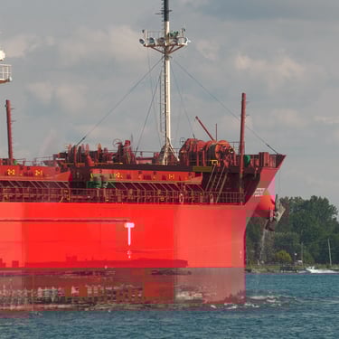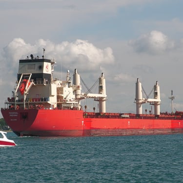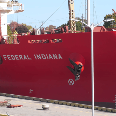 Bulk carrier Federal Indiana and tanker Fure Viten exchange a salute while passing in front of St. Clair, Michigan. July 20, 2025.