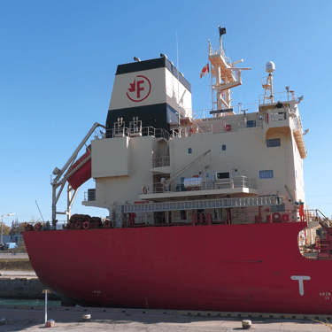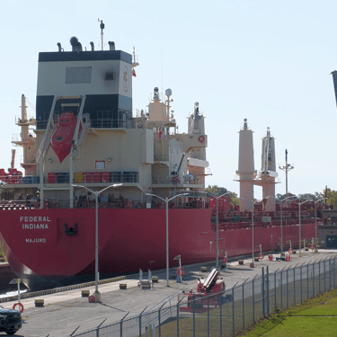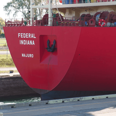Launched in 2024, the beautiful new saltwater ship, Federal Indiana passing through Lock 8, on the Welland Canal, a vital waterway that connects Lake Erie to Lake Ontario. Port Colborne, Ontario, Canada. October 19, 2024.