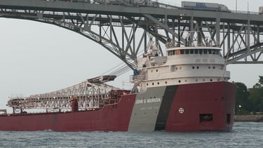 Headquartered in Duluth, Minnesota, Great Lakes Fleet was formed in 1967, when owner U.S. Steel consolidated their Pittsburg Steamship division and Bradley Transportation Company. The company now operates as a subsidiary of Canadian National Railway. Great Lakes Fleet is a diverse collection of classic lake freighters, a river class freighter and three one-thousand-footers, including the unique 1,000' long, integrated tug barge Presque Isle. Great Lakes Fleet vessels have a dark red hull, with a black and gray stripe on the bow. These colors represent the primary cargoes of iron ore, coal and limestone.