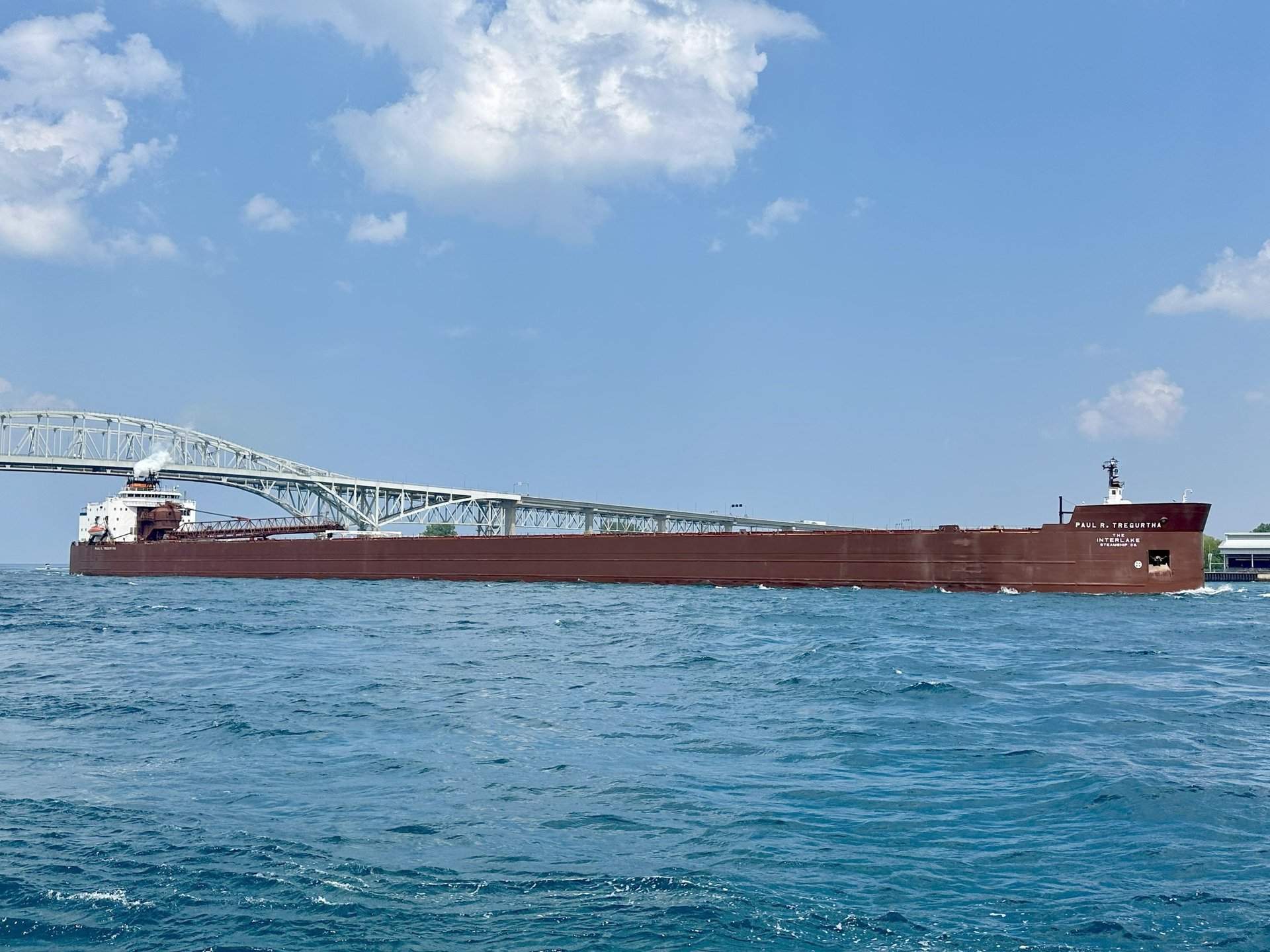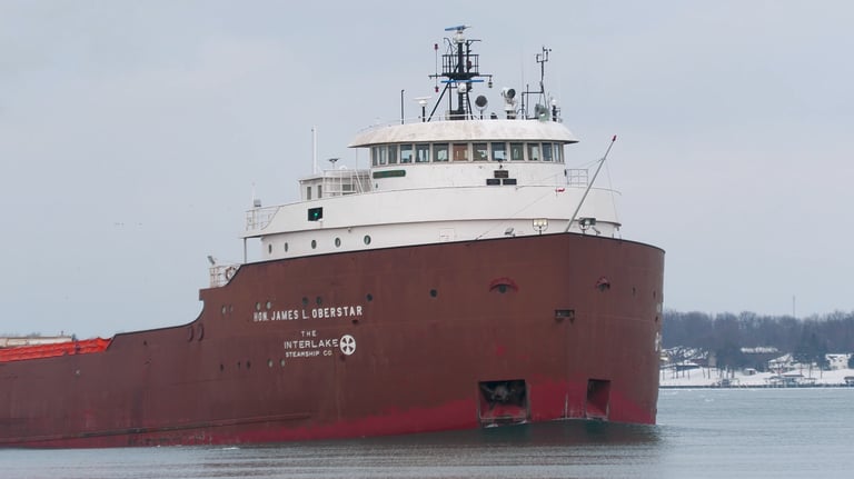 Established in 1913, family-owned Interlake Steamship Company is based in Middleburg Heights, Ohio. The company's diverse fleet of self-unloading bulk carriers includes classic lake freighters, a river class vessel, an articulated tug barge, and four one-thousand-footers. One of these vessels, the 1,013.5' (308.9 m) Paul R. Tregurtha, holds the title of "Queen of the Lakes", as she is the longest ship on the Great Lakes. Collectively these vessels move twenty million tons of raw materials annually. Cargoes include iron ore, coal, limestone and other aggregates.