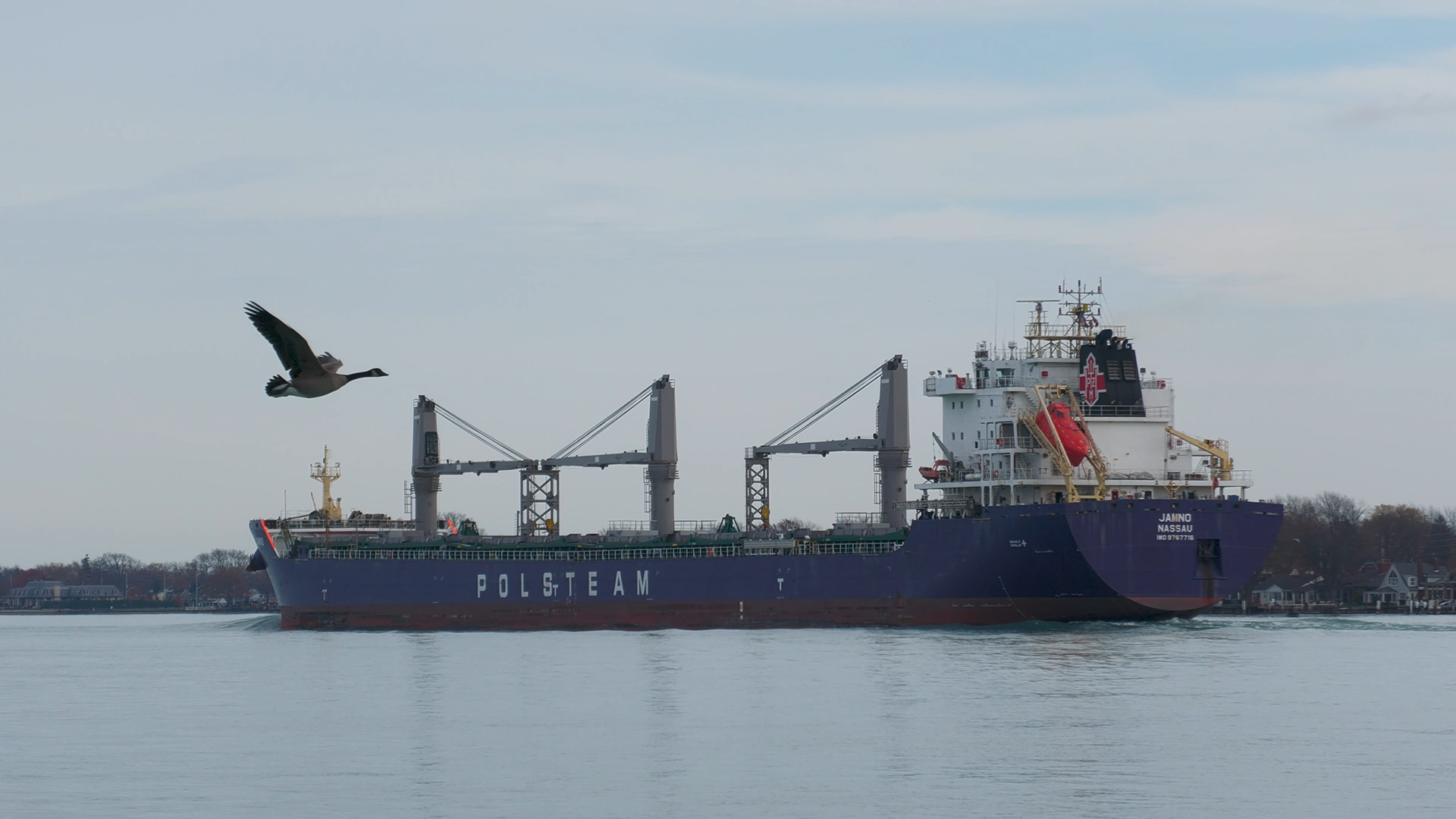 656 Foot Long Saltwater Ship JAMNO Gliding Up the Detroit River!