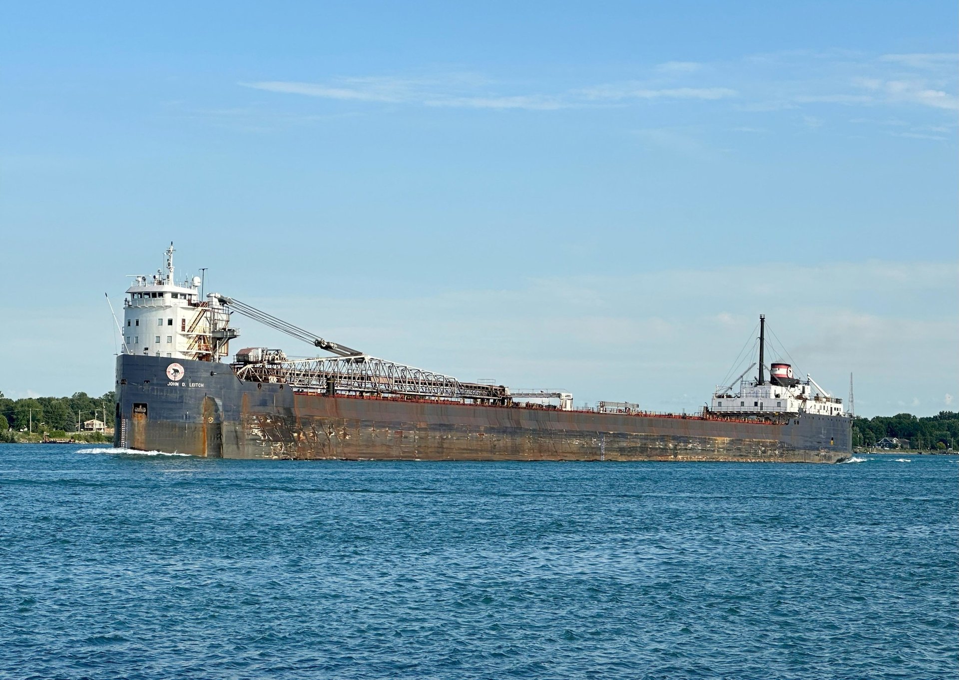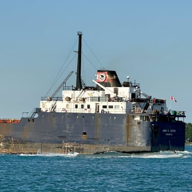 730’ Classic Great Lakes freighter John D. Leitch (Algoma Central Corporation) heads up the St. Clair River, passing by St. Clair, Michigan on a busy Sunday evening. July 20, 2025.