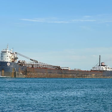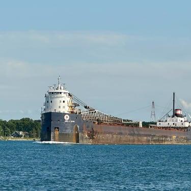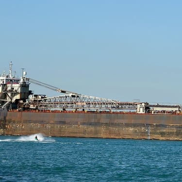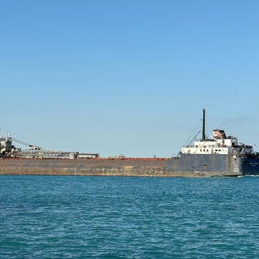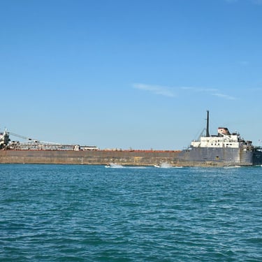 One of a Kind Classic Lake Freighter in Sunday Boat Traffic!