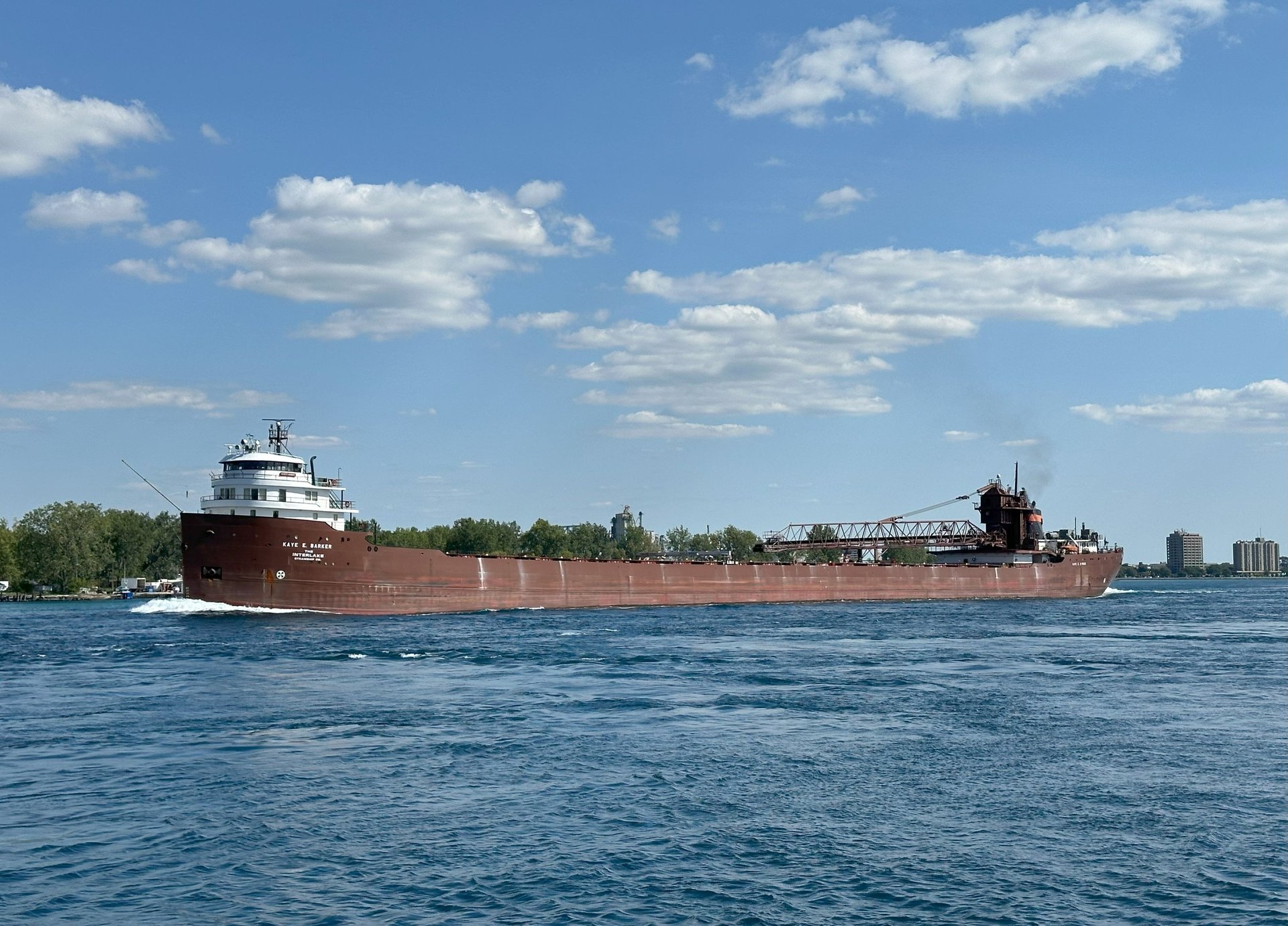 767’ Classic lake freighter Kaye E. Barker (Interlake Steamship Company) upbound on the St. Clair River, passing Marine City, Michigan. June 03, 2025.