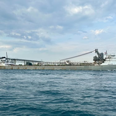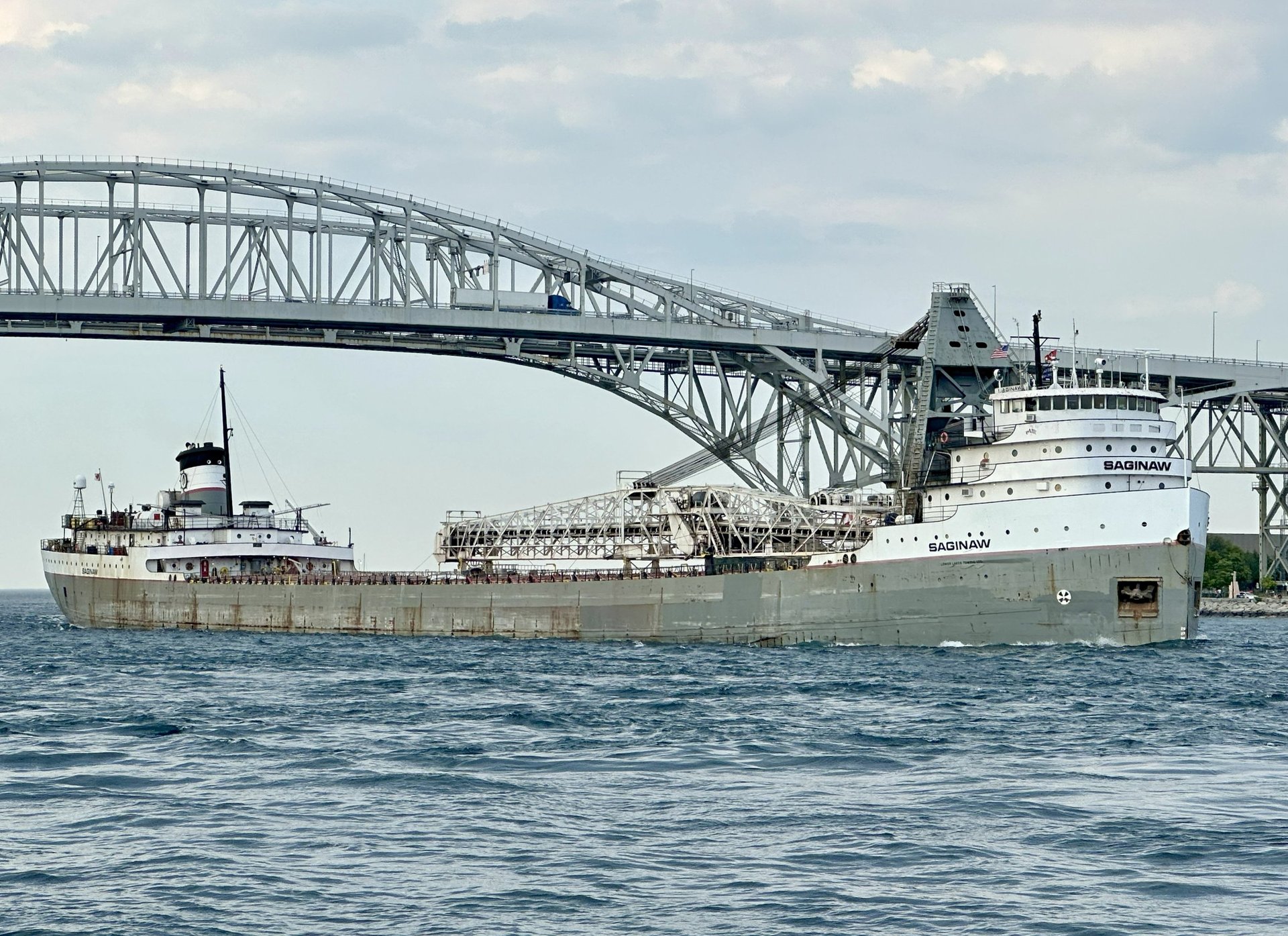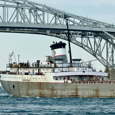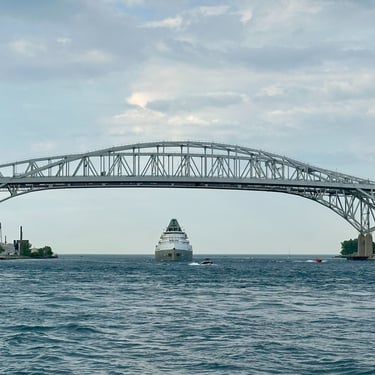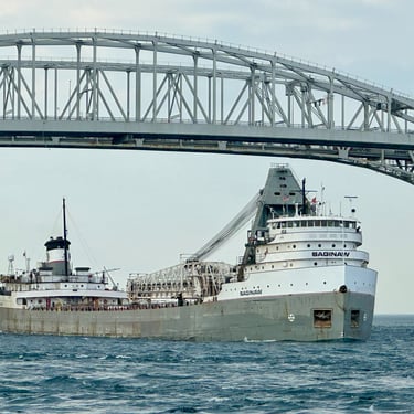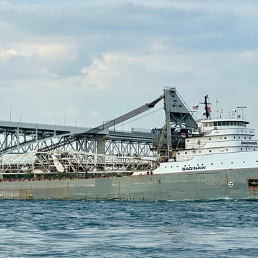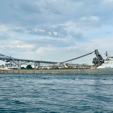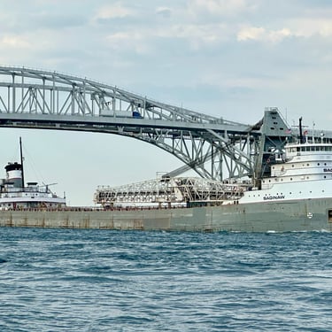 A salute in the shadows of the Blue Water Bridge, from the classic 639’ 3” lake freighter Saginaw. May 10, 2025.