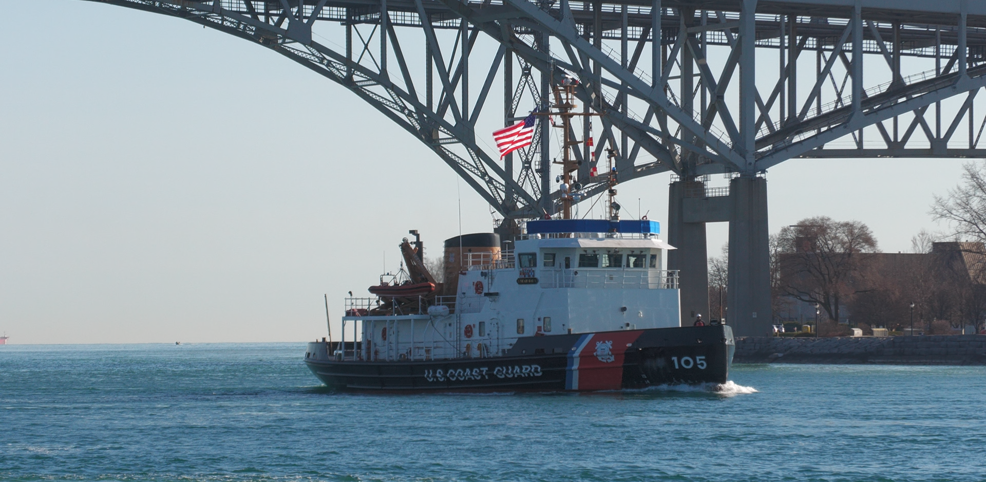 U.S. Coast Guard Vessel Neah Bay Passing Marine City, Michigan
