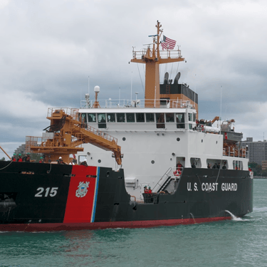 USCGC Sequoia Salute! US Coast Guard Cutter Sequoia, a Juniper Class Bouy Tender, gives a salute on the St. Clair River in St. Clair, Michigan. September 07, 2024,