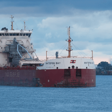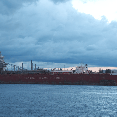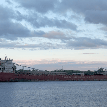Great Lakes Freighters Passing and a Friendly Tour Boat Salute!